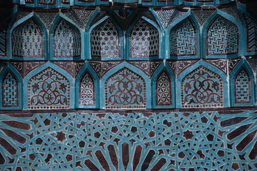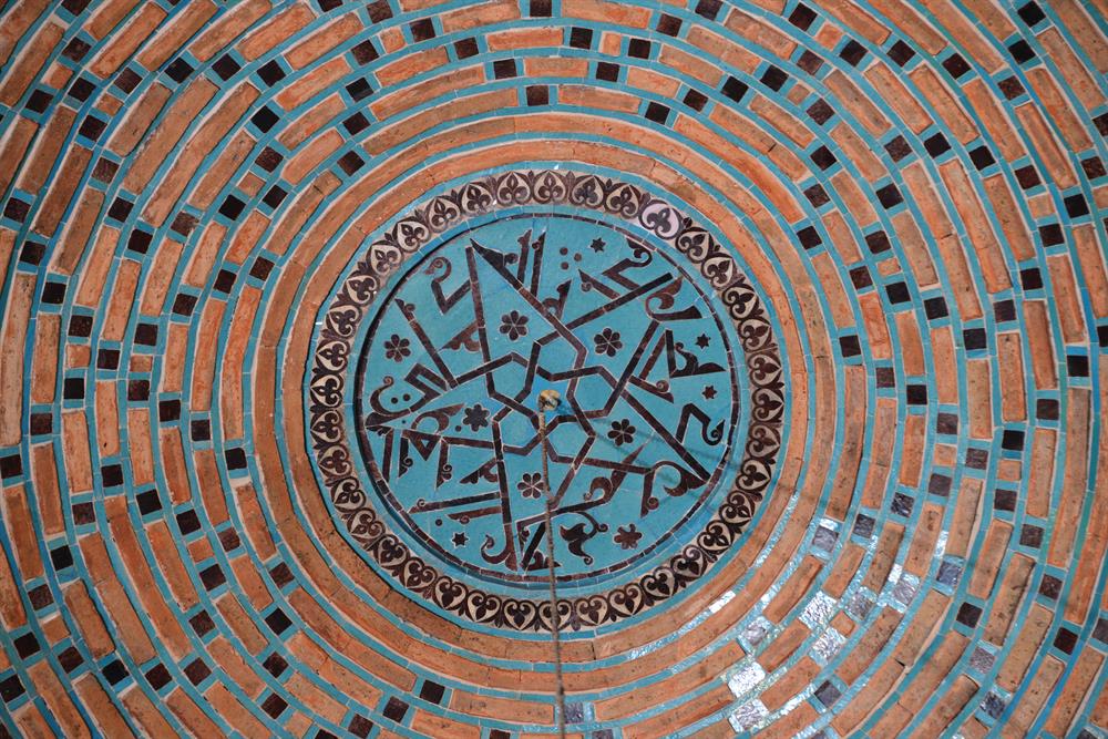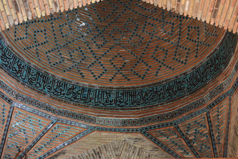 Kubbede yer alan çini yazı kuşağından bir kesit.