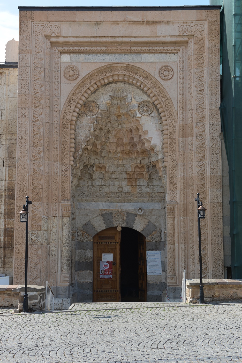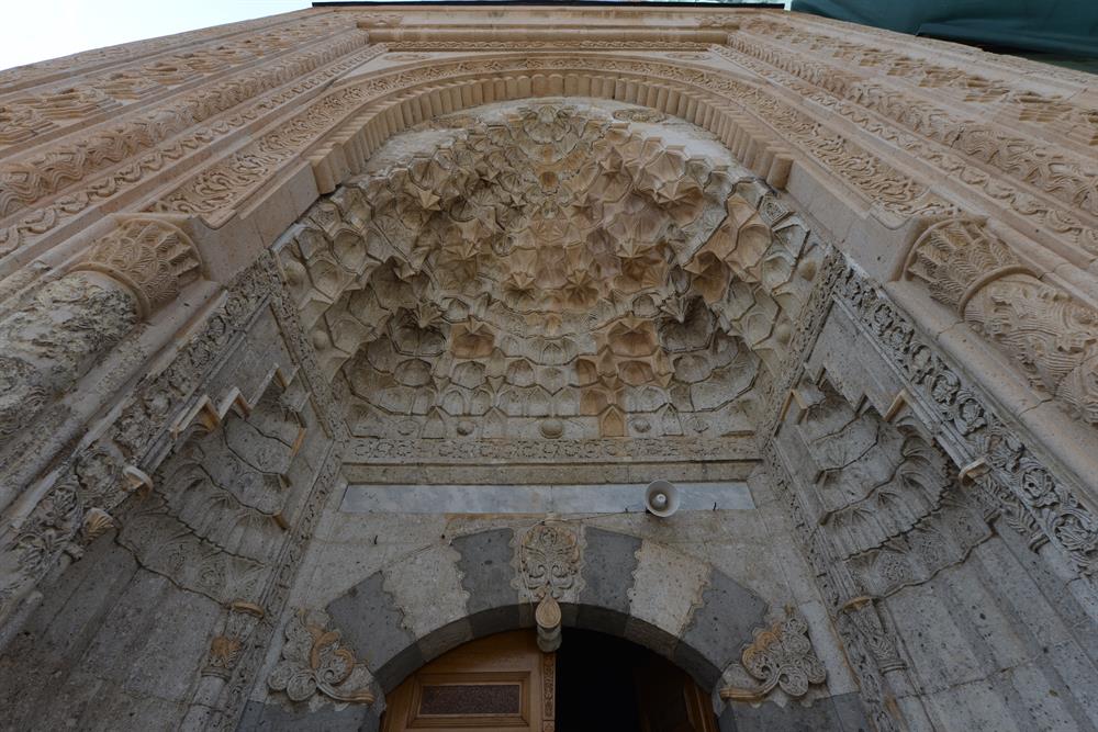 Eşrefoğlu Camii'nin nefis taş işçilikli abidevi taç kapısı.