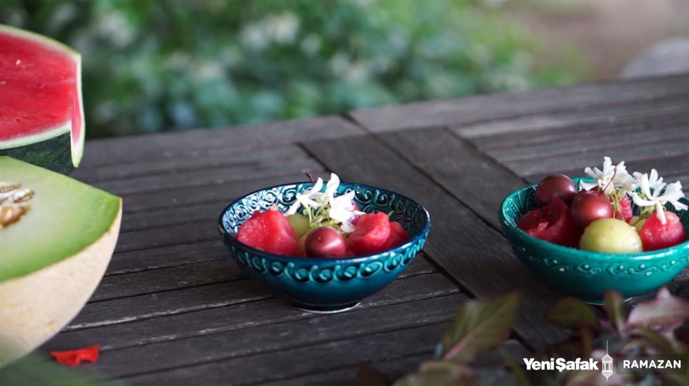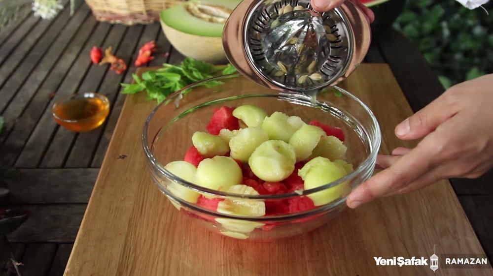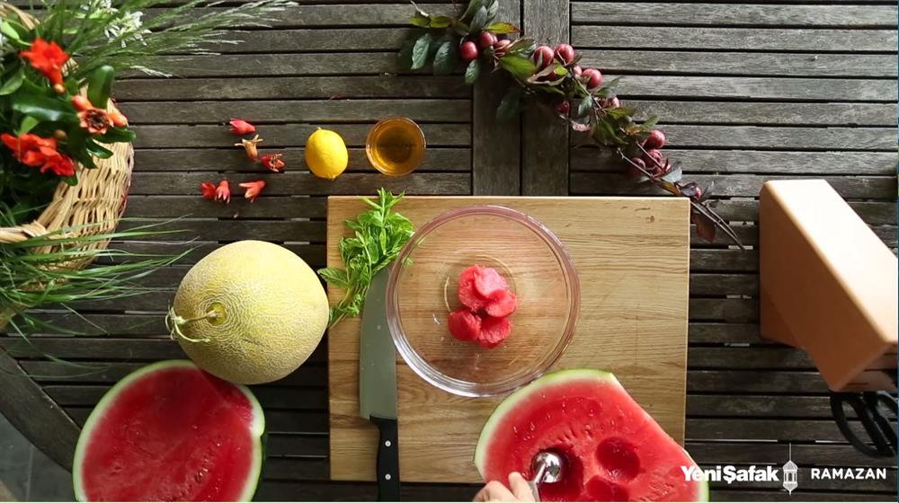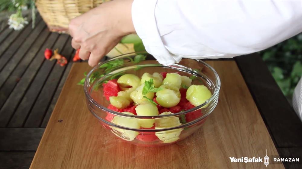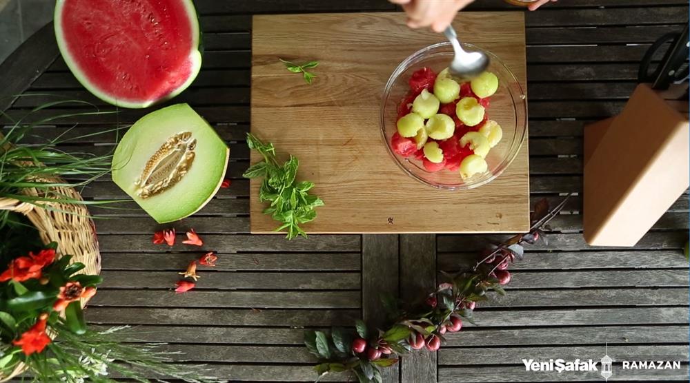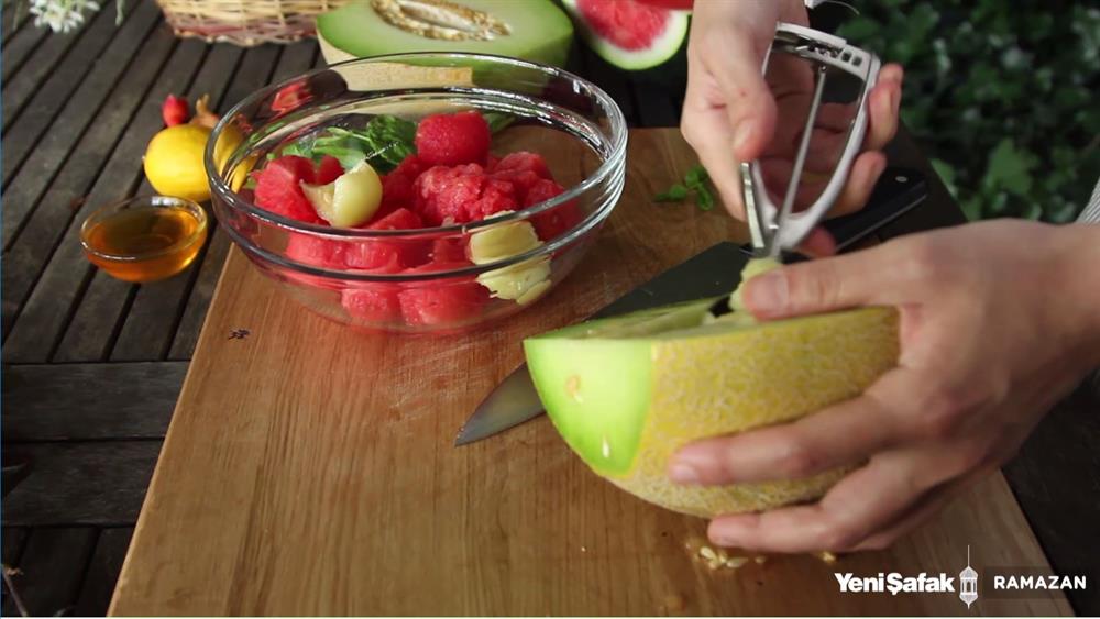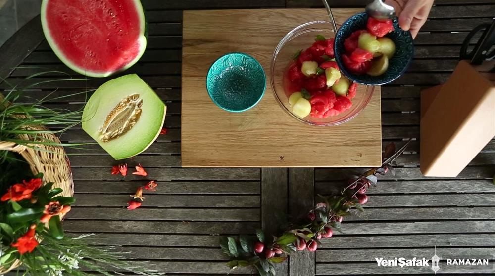 Kavunu da aynı şekilde kesip servis kasesine alın.