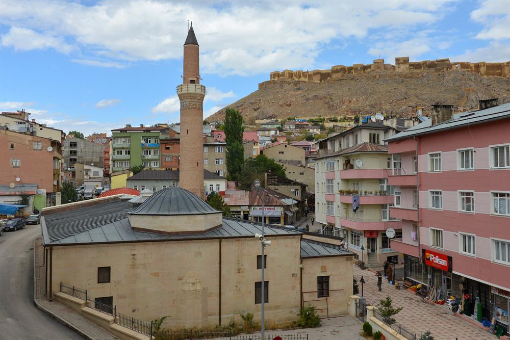 Cami, şehir merkezinde betonarme binalar arasında sıkışıp kalmış.