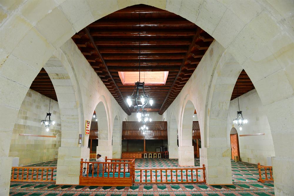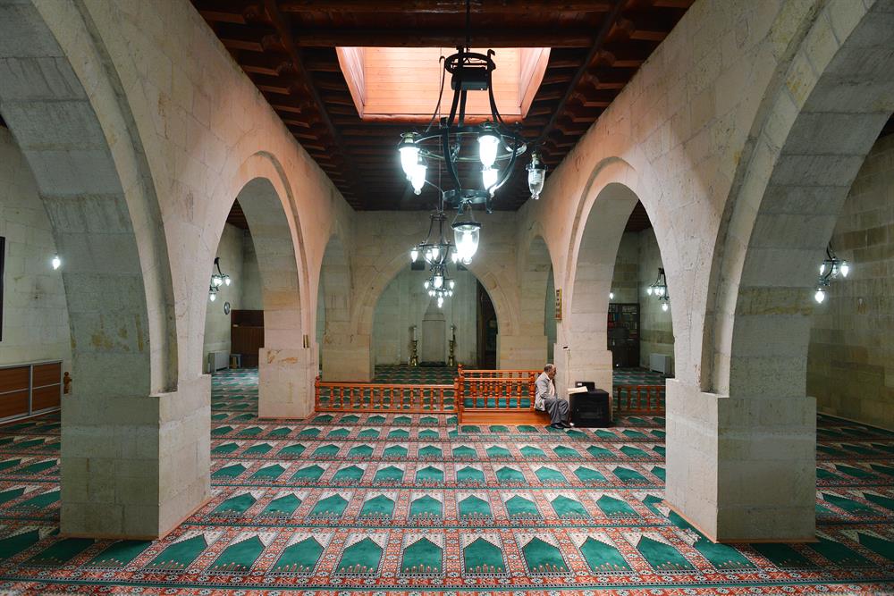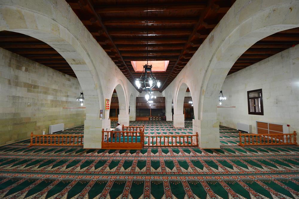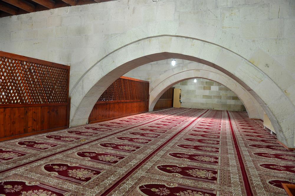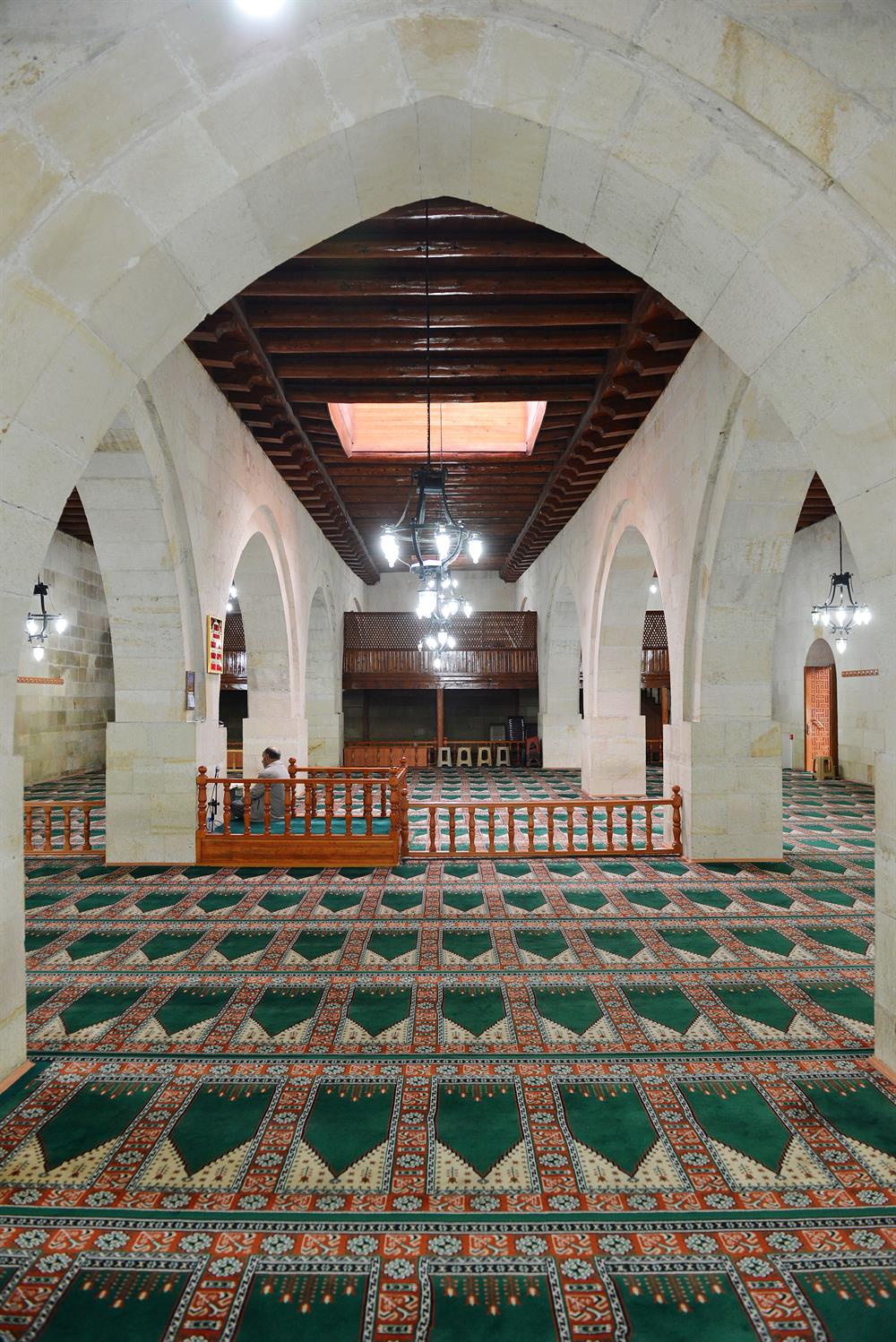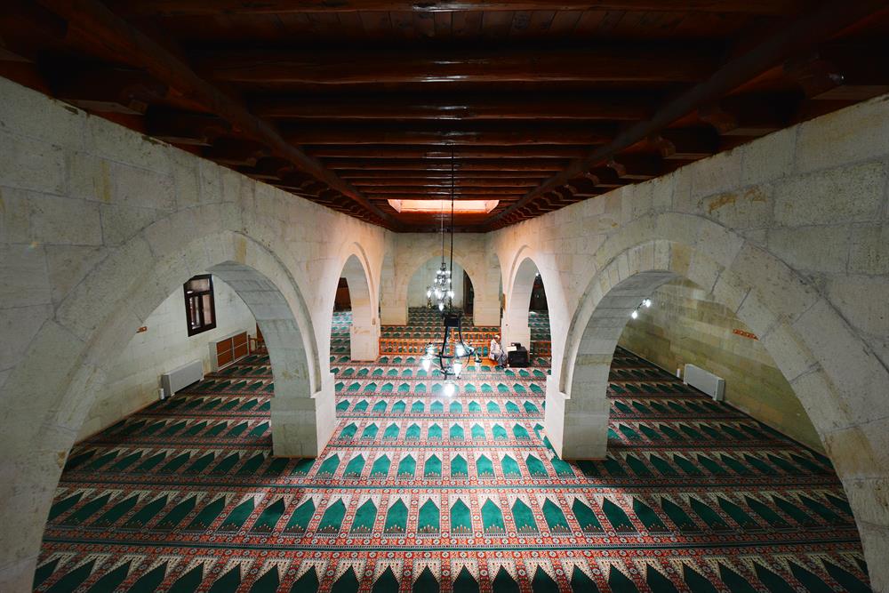Caminin harimi mihrap yönüne dik uzanan üç nefli, mihrap önü kubbeli bir plana sahip. Taş payeler sivri kemerlerle birbirine bağlanmış.