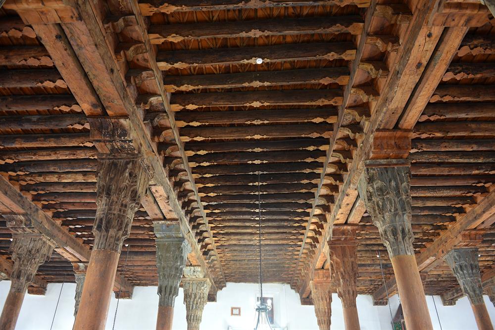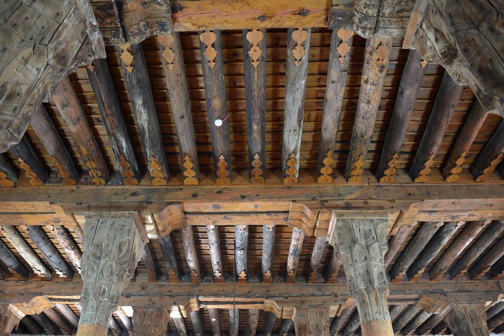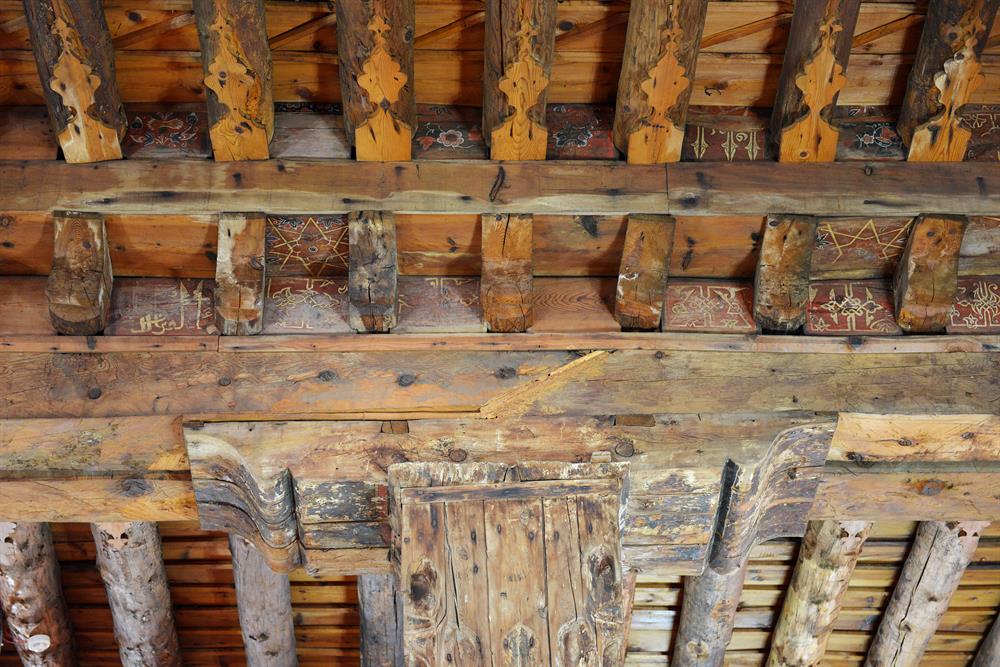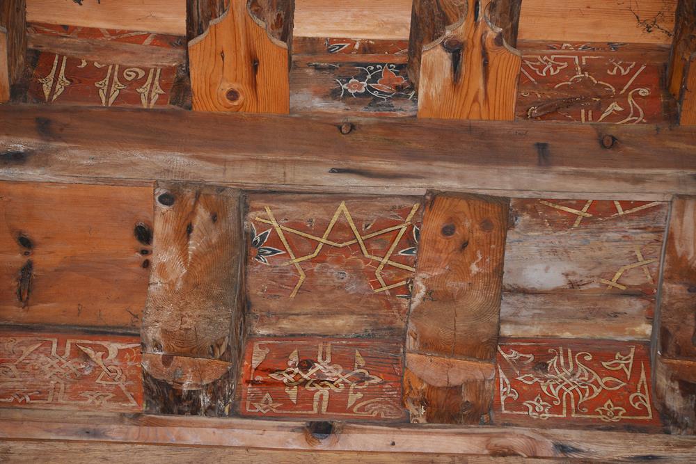 Ahşap tavan ve kirişlerde günümüze ulaşabilen renkli boyalı bezemeler.
