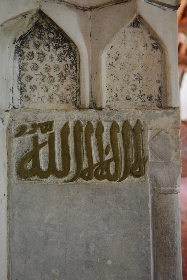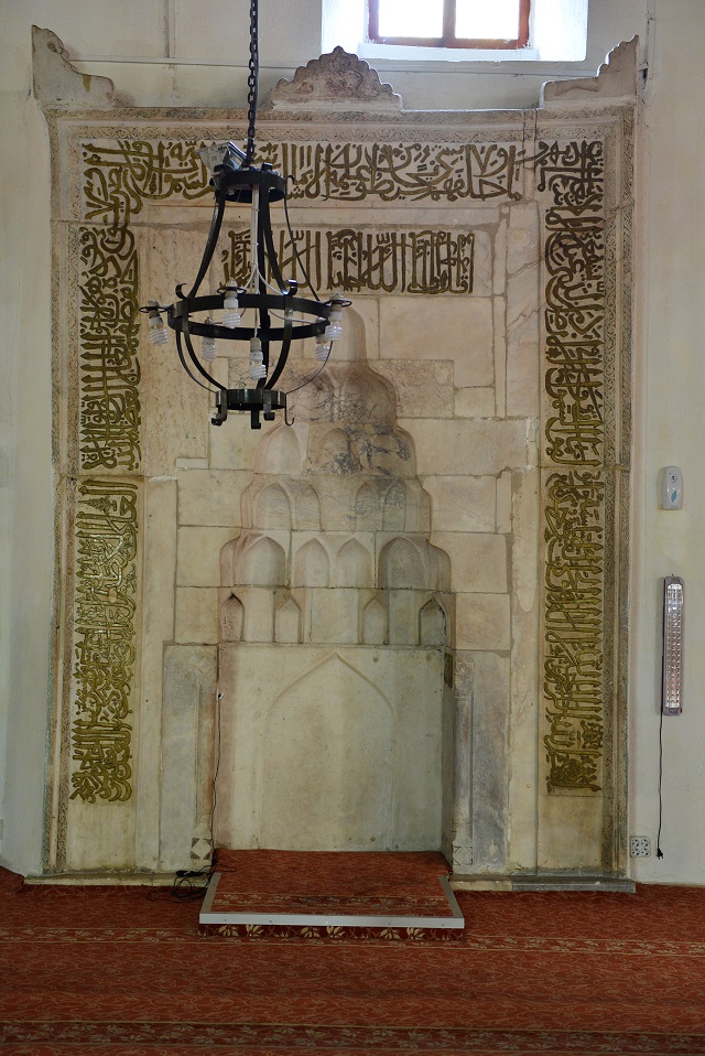 Taş mihrap bitkisel bezemeli bordür ve nesih hatla yazılmış yazı kuşağı ile çevrelenmiş.