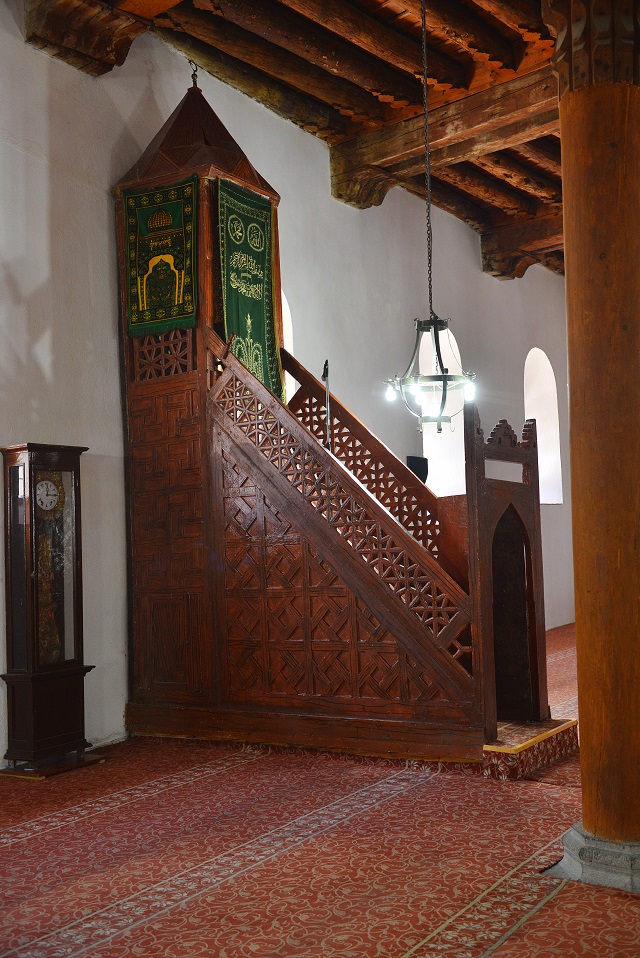 Cami içerisindeki ahşap işçiliği kayda değer güzellikte.