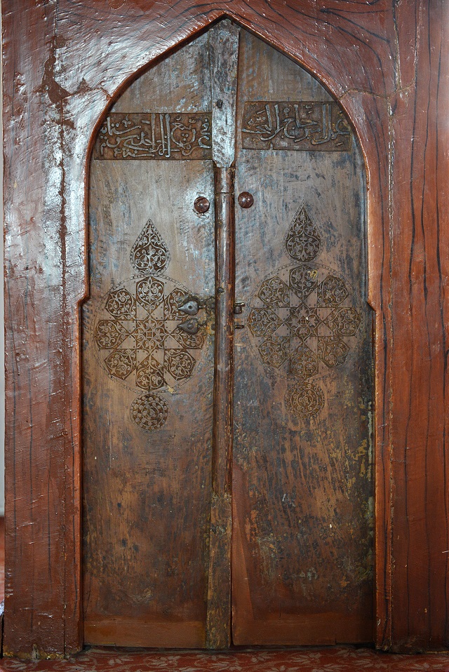 Minberin orijinal ahşap kapısı üzerinde yer alan kitabede yapının ahşap işlerini yapan Neccâr Emîrihac Bey'in adı yazıyor.
