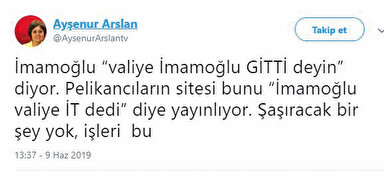 - Öfkesini kontrol edemeyen Ekrem İmamoğlu tatil yaparken CHP medyası İmamoğlu’nun imza attığı skandala kılıf uydurmak için adeta birbiri ile yarıştı. Başta Oda Tv ve Halk TV olmak üzere “İmamoğlu ‘gitti’ deyin ifadelerini kullandı, montajlayıp ‘it’ olarak servis ettiler iddiasında bulundu. CHP ilintili gazeteci Ayşenur Arslan ise sosyal medya hesabından “İmamoğlu “valiye İmamoğlu GİTTİ deyin” diyor. Pelikancıların sitesi bunu “İmamoğlu valiye İT dedi” diye yayınlıyor. Şaşıracak bir şey yok, işleri bu” iddiasında bulundu. Bu iddialar bizzat CHP Milletvekilleri tarafından da savunuldu. Ancak İmamoğlu “it değil ‘basit’ dedim diyerek” CHP medyasını yalanlamış oldu.
