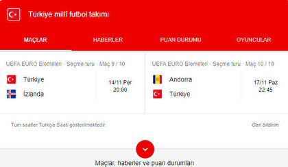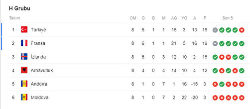 - A Milli Futbol Takımımız, EURO 2020 Elemeleri H Grubu'nda 19 puanla ilk sırada yer alıyor. Millilerimiz 14 Kasım Perşembe günü Türk Telekom Stadyumu'nda oynayacağı İzlanda maçını kazanırsa Avrupa Şampiyonası'na gitmeyi garantiliyor.