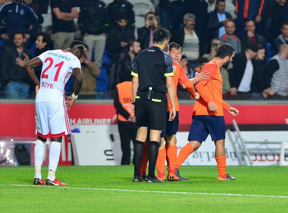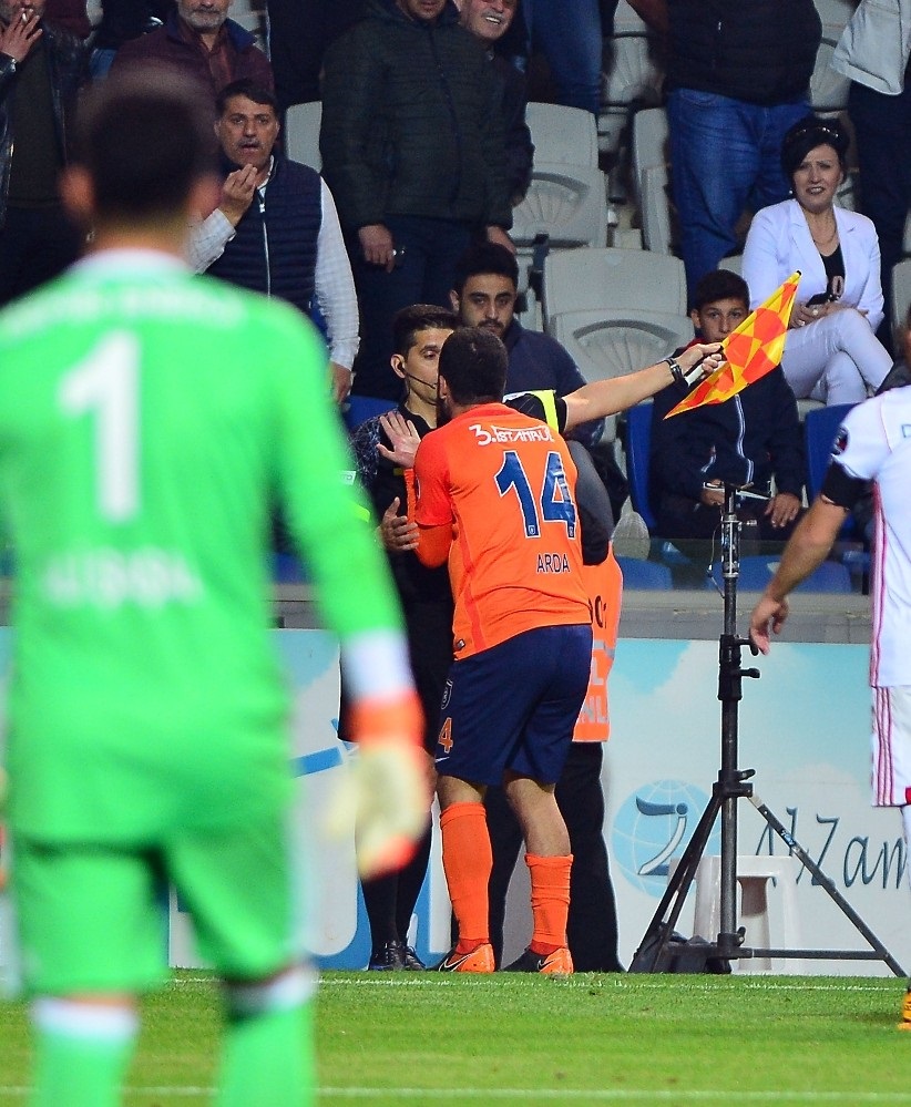 Başakşehirli futbolcular Sivasspor'a karşı kaybedilen 2 puandan sonra adeta yıkıldı. Yenilen golden sonra Emre Belözoğlu, sahanın ortasında kendini yere bırakırken Arda Turan bir pozisyon esnasında sinirlerine hakim olamadı ve yardımcı hakeme itiraz ederken fiziksel müdahalede bulundu. Milli futbolcu kırmızı kartla oyundan atıldı.
