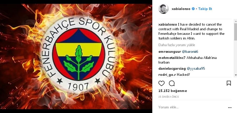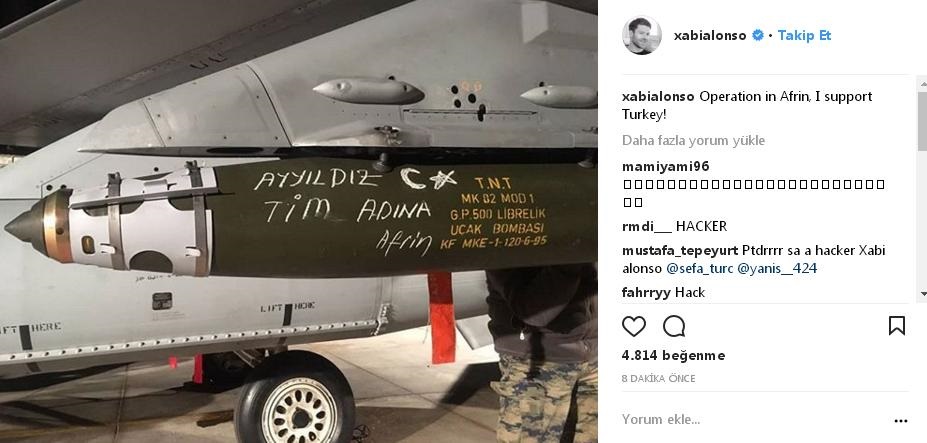 Türk hacker grubu Ayyıldız Tim, Xabi Alonso'nun Instagram hesabını hack'leyerek bu paylaşımları yaptı.