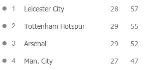 Bu sonuçla 55 puana yükselen Tottenham 2. sıradaki yerini korudu. 52 puana yükselen Arsenal 3. sırada yer aldı.