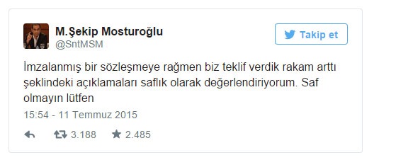 Yaşanan gelişmeler üzerine Fenerbahçeli yönetici Şekip Mosturoğlu, kişisel Twitter hesabından Van Persie transferiyle ilgili Beşiktaş'a göndermede bulundu. Mosturoğlu, "İmzalanmış bir sözleşmeye rağmen 'Biz teklif verdik, rakam arttı' şeklindeki açıklamaları saflık olarak değerlendiriyorum. Saf olmayın lütfen" dedi.