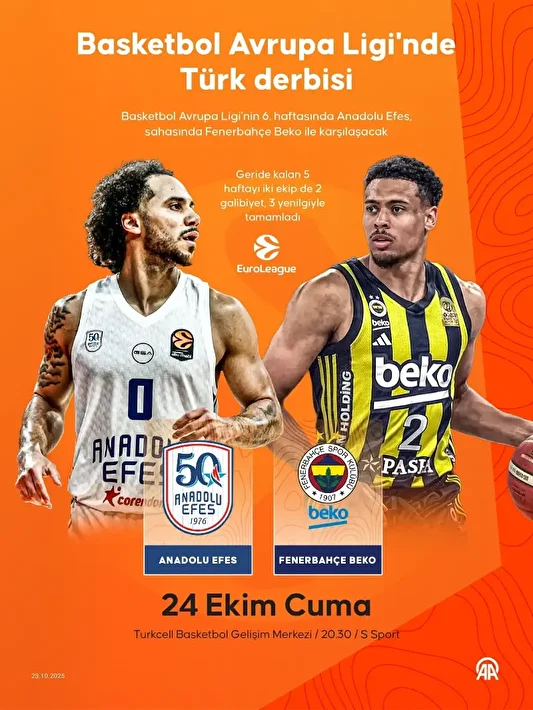 Basketbol EuroLeague'in 6. haftasında Fenerbahçe Beko ile Anadolu Efes karşı karşıya gelecek. EuroLeague’de büyük heyecana sahne olacak Türk derbisinde, geçtiğimiz sezonun şampiyonu Fenerbahçe Beko ile iki kez EuroLeague kupasını kaldıran Anadolu Efes, kritik bir mücadelede karşı karşıya gelecek. Basketbol tutkunları ise karşılaşmanın ne zaman, saat kaçta ve hangi kanalda yayınlanacağını araştırmaya başladı. İşte Fenerbahçe Beko-Anadolu Efes basketbol maçının yayın bilgileri ile takımlardan son gelişmeler.