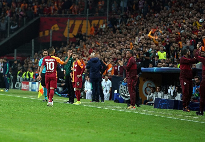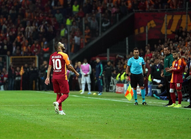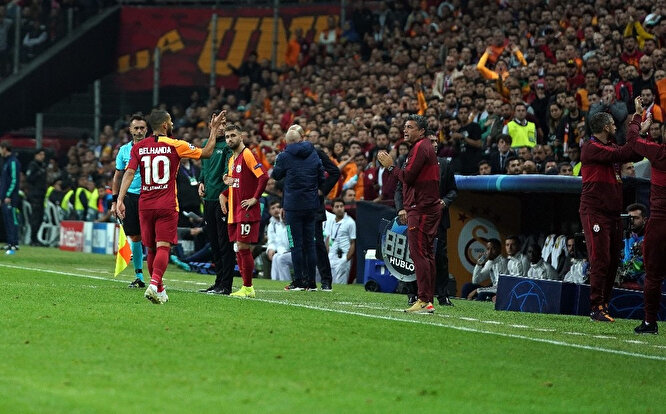 Mücadeleye 11’de başlayan Belhanda, 67. dakikada oyundan çıkarken sarı-kırmızılı taraftarlar yıldız futbolcuyu ıslıkladı. Taraftarların bu hareketine tepki gösteren Teknik Direktör Fatih Terim ve yardımcıları, yapmamaları konusunda uyarılarda bulundu.