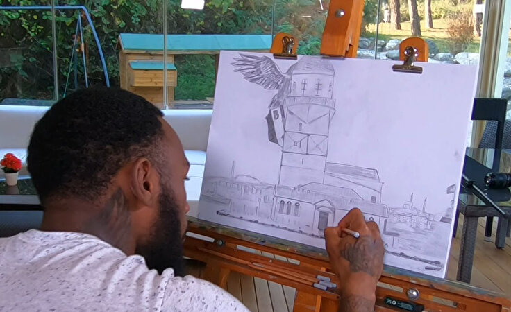 Röportaj sırasında Kız Kulesi'nin manzarası ile Kartal amblemi çizen Georges-Kevin N'Koudou, resim yapma yeteneği ile ilgili şunları kaydetti;