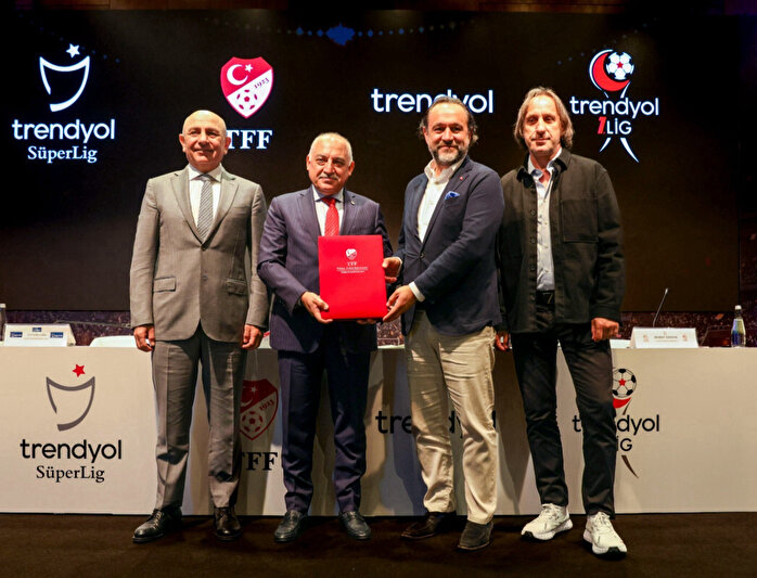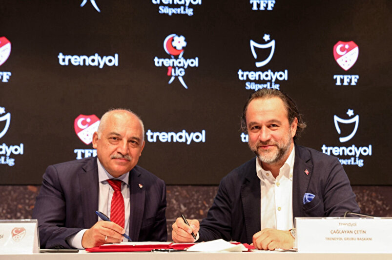 , "Tarihi bir iş birliği anlaşmasını duyuruyoruz. Ülkemizin en güçlü ve en hızlı büyüyen markalarından Trendyol, hem Süper Lig'in hem de 1. Lig'in isim sponsoru oldu. İki ligimizin de tarihinin en büyük sponsorluk anlaşmasına imza atmaktan gurur duyuyoruz. Bu anlaşmayla Türk futboluna güç verdiler"