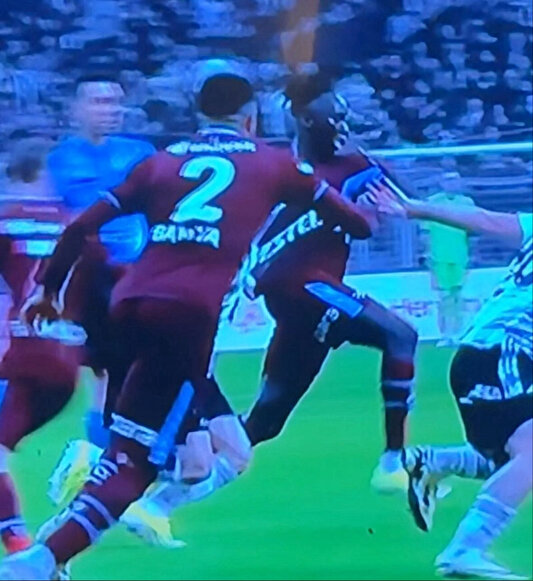 Karşılaşmanın 42. dakikasında Beşiktaş ceza sahası içinde Svensson, Bardhi'yi formasından çekip yere düşürdü. Trabzonsporlu futbolcular pozisyonun penaltı olduğu yönünde yoğun itirazlarda bulundu. Hakem Arda Kardeşler VAR'ı dinledikten sonra karşılaşmayı kaldığı yerden devam ettirdi. Pozisyonun ardından gelişen atakta Beşiktaş, Semih Kılıçsoy'un ayağından bulduğu golle 1-0 öne geçti.