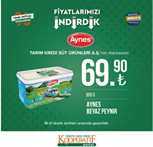 Bilindiği gibi Tarım Kredi Kooperatifleri sadece üretim öncesi çiftçimize destek olmakla kalmıyor, ürünü de alıp işleyerek marketlerinde satışa sunuyor. Bir başka ifadeyle üretici-Tarım Kredi-tüketici arasında doğrudan bir kanal kuruluyor. Böylece kimi ürünlerin en uygun fiyatla satışa sunulabilmesi mümkün oluyor. Önümüzdeki yılın ilk yarısında sayılarını 3 bine çıkarmayı hedeflediğimiz Tarım Kredi satış noktalarındaki indirimler bugün itibarıyla başlamıştır. Üreticilerimize ve tüketicilerimize verdiğimiz bu müjdelerin de hayırlı olmasını diliyorum."