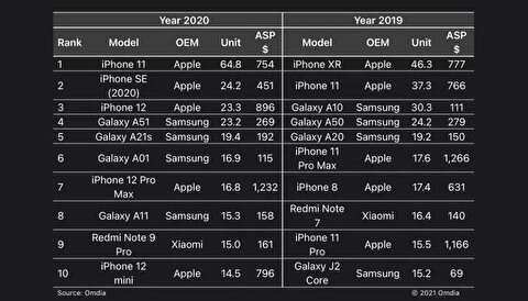 Omdia araştırma şirketi, 2020'nin en çok satan akıllı telefonlarının listesini paylaştı. Ayrıca bir önceki yıla oranla bir kıyaslama da var. Listenin büyük bir bölümü Apple'a ait olsa da sıralamada Samsung'un da birçok farklı ürünü yer alıyor.
