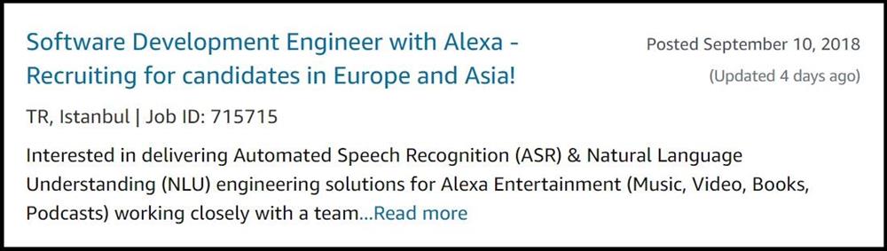 Bu iş ilanı ile birlikte Amazon servislerinin özellikle de Alexa’nın önümüzdeki dönemlerde ülkemiz için kullanıma sunulacağını söylemek yanlış olmayacaktır.