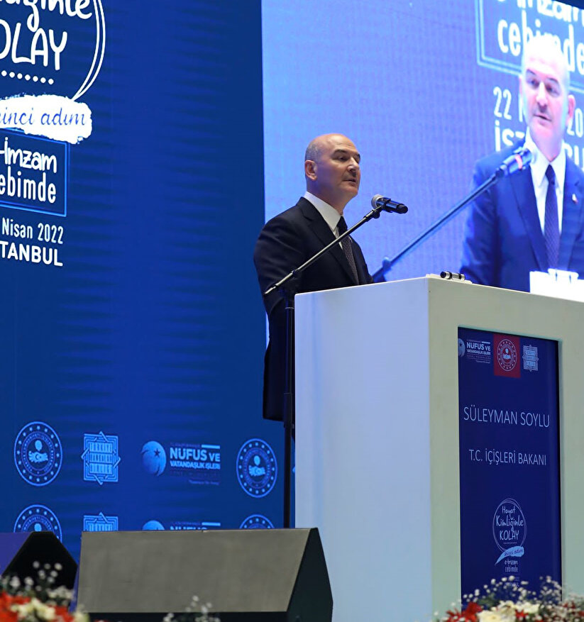 'T.C. Kimlik Kartına E-imza yükleme' lansmanı Beşiktaş'ta bir otelde gerçekleştirildi. Lansmana İçişleri Bakanı Süleyman Soylu, İstanbul Valisi Ali Yerlikaya ve çok sayıda davetli katıldı. T.C. Kimlik Kartına nüfusmatikler aracılığıyla E-imza'nın yüklenmesini sağlayan uygulamanın tanıtıldığı lansmanda, Maslak'taki bir banka ve Üsküdar İlçe Nüfus Müdürlüğüne canlı olarak bağlanılarak sistem test edildi.