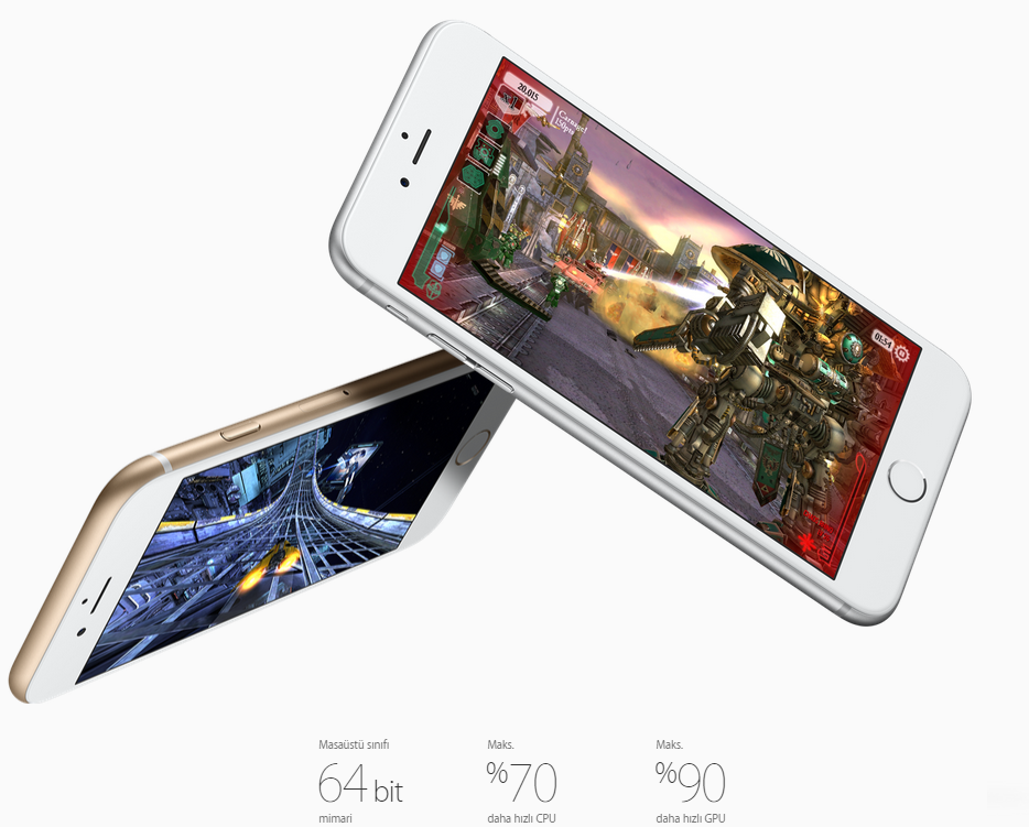 Yongaseti ayağında A8'den A9'a geçen Apple'a göre bu terfinin pratikteki yansıması %70 daha hızlanan CPU ile %90 doping alan GPU olmuş. Tabii henüz testler gelmediği için mim düşmekte fayda var bu rakamlara ama gördüğümüz kadarıyla -her ne kadar denildiği gibi konsol kalitesine erişilmiş olmasa da- oldukça tatminkar bir performansa sahip. Ki zaten en nihayetinde HD (6S) ve FHD (6S Plus) çözünürlüğe sahip telefonlardan bahsediyoruz. Yani asıl yağ gibi akmaması sürpriz olurdu! :) RAM ise 1GB'den 2GB'a yükselmiş durumda. Bu da oldukça önemli bir detay.