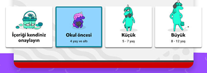 her ne kadar genel tabiriyle çocuklar için olsa da aslında kendi içinde de yaşa göre bir filtreleme mekanizması sunuyor. Böylece okul öncesi (4 yaş ve altı), küçük (5-7 yaş) ve büyük (8-12 yaş) arasından seçim yapılıp ilgili içerikler listelenebiliyor.