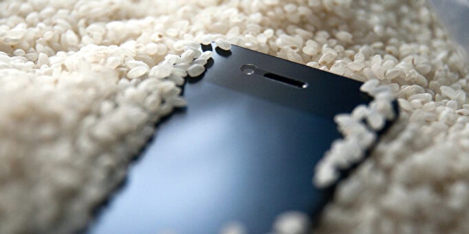 Çıkarılabilir parçalarına ayırdığınız telefonu pirinç dolu bir kabın içesine gömün ve ağzını kapatın. 2 gün boyunca telefonu kabın içerisinden çıkarmayın.