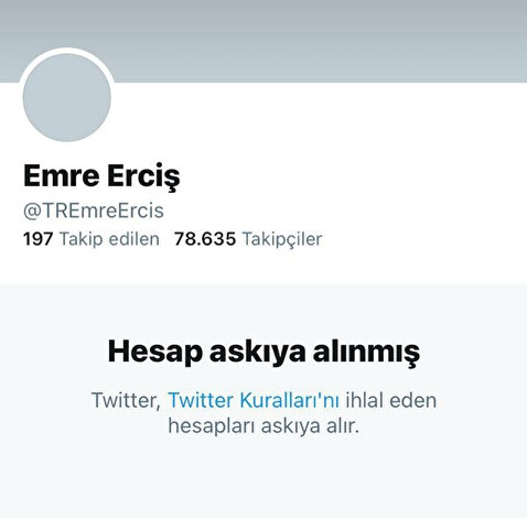 açıklaması yapan Emre Erciş, bu paylaşımından sonra Twitter tarafından engellendi. Twitter, Erciş’in hesabını askıya aldı.