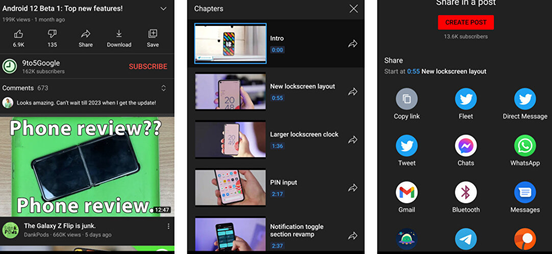 YouTube masaüstünde uzunca bir süredir yer alan video bölümü sistemi Android uygulamasına da geliyor. Böylece içerik üretici tarafından oluşturulan bölümleme doğrultusunda videonun belirli kısımlarına hızlıca erişim sağlanabiliyor.