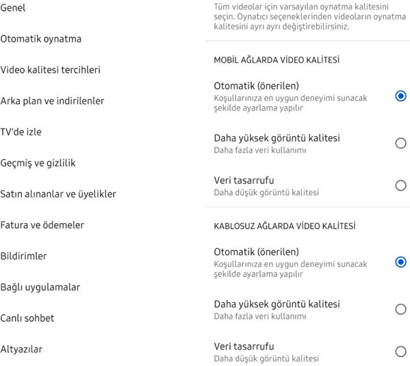 video çözünürlüğünde otomatik, daha yüksek görüntü kalitesi, veri tasarrufu ve gelişmiş seçenekleri sunuluyor.