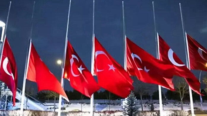 Bütün yurtta ve dış temsilciliklerde 12 Şubat 2023 Pazar günü güneşin batışına kadar bayraklar yarıya çekilmişti.