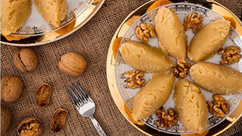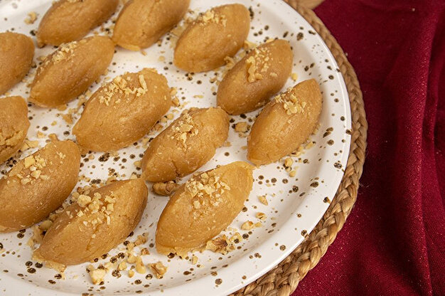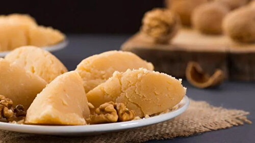 - 9.Şekil verdiğiniz helvaları bir süre dinlendirdikten sonra üzerini ceviz ya da farklı yemişlerle süsleyin. Un helvanız servise hazır.