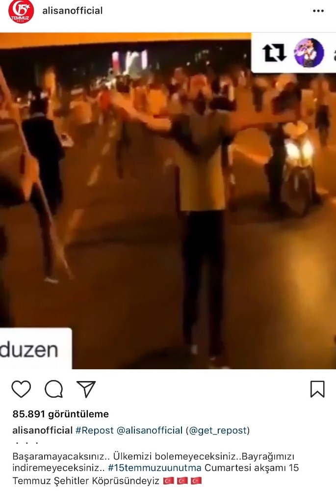 FETÖ terör örgütünün 15 Temmuz 2016’da başarısızlıkla sonuçlanan darbe girişiminin ardından bir yıl geçti. Ülke genelinde 15 Temmuz şehitlerini anma törenleri düzenlenirken, ünlülerde kanlı darbe girişiminin yıl dönümünde tepkilerini sosyal medya hesaplarından dile getirdi.