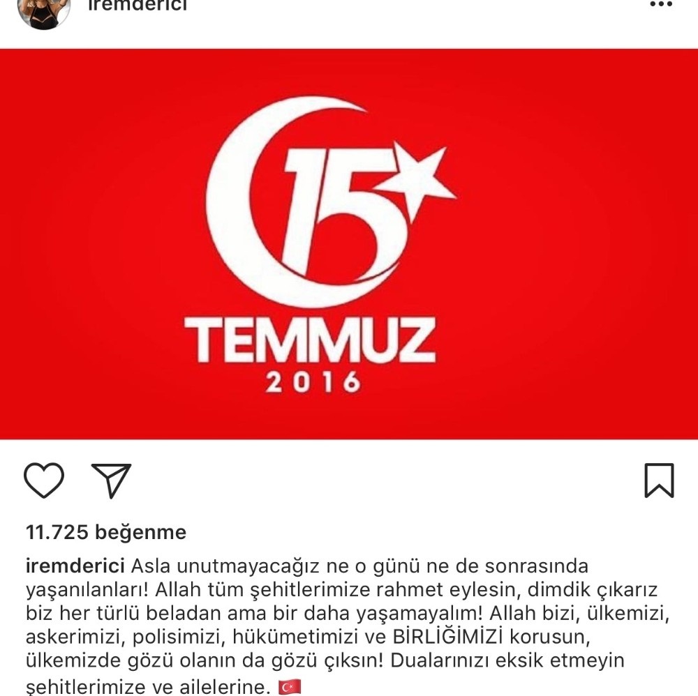 Ünlü isimlerden 15 Temmuz mesajları gelmeye devam ediyor. Darbe girişiminin birinci yıl dönümünde ünlüler de sosyal medya hesaplarından 15 Temmuz mesajları paylaştılar.