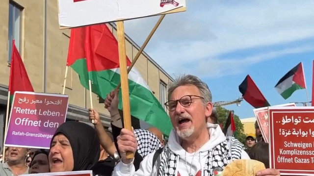 Almanya'nın başkenti Berlin'de yüzlerce Filistin destekçisi, Mısır'ın Berlin Büyükelçiliği ve Almanya Savunma Bakanlığının yakınlarındaki Sigismund Caddesi üzerinde toplandı. Göstericiler, terör devleti İsrail'in sistematik soykırım ve açlık uygulamasını, ellerine aldıkları kaşıkları tencerelere vurarak protesto etti.