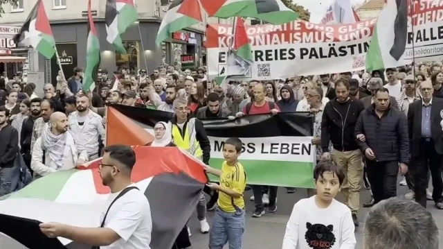 Avusturya'nın başkenti Viyana'da yüzlerce Filistin destekçisi, terör devleti İsrail'e yaptırım uygulanması çağrısıyla gösteri düzenledi. Gösteride, "Filistin'e özgürlük", "Soykırımı durdurun" ve "Hemen şimdi, İsrail'e yaptırım!" sloganları atıldı.