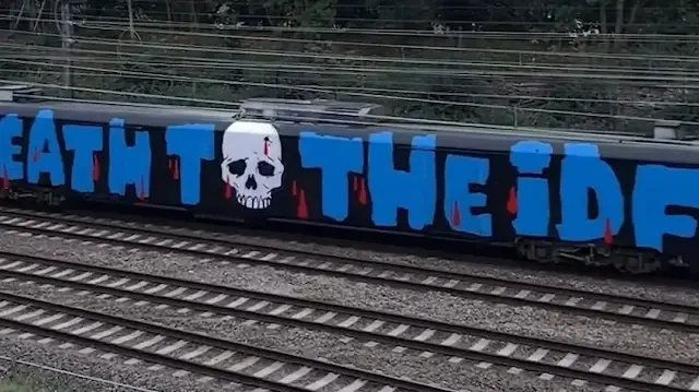 Belçika'nın Anvers şehrinde bir graffiti sanatçısı, trenlerin üzerine Gazze'de soykırım uygulayan İsrail'e gönderme yaparak, "Death to the IDF", "İsrail ordusuna ölüm" yazdı.