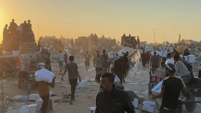 Gazze Şeridi'nin orta kesimindeki Netzarim Koridoru üzerinden ulaştırılan insani yardım tırları, İsrail saldırıları ve ağır insani kriz altında yaşam mücadelesi veren Filistinlilere dağıtıldı. Yardım kuruluşları tarafından gönderilen yardımların ulaştığı noktada, gıda sıkıntısı çeken çok sayıda Filistinli yardım alabilmek için toplandı.