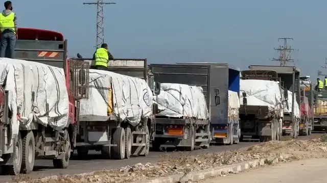 İşgalci İsrail ve Hamas'ın Gazze'de ateşkes ve esir takası anlaşmasını sağlamasının ardından Gazze Şeridi’ne kısıtlı miktarda insani yardım ulaştırılmaya devam ediyor. Dünya Merkez Mutfağı (WCK) organizasyonuna ait gıda malzemelerini taşıyan yardım tırları Kerem Ebu Salim (Kerem Şalom) Sınır Kapısı’ndan, Gazze’ye giriş yaptı.