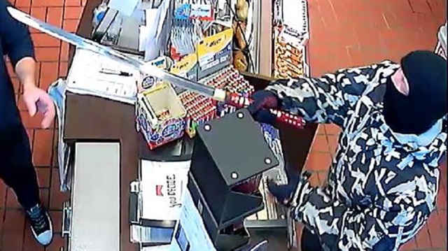 Almanya'nın Hannover kentinde maskeli bir kişi, kılıçla benzin istasyonunu soydu. Hannover polisinin verdiği bilgiye göre, kılıçlı soyguncu 22 Ocak Pazar günü saat 09.25 sularında Davenstedter Caddesi'ndeki benzin istasyonuna geldi. Soyguncu, elindeki geleneksel Japon kılıç modeli 'katana'yı doğrultarak kasiyeri tehdit etti. Kasiyerin kasayı açmaması üzerin soyguncu bu kez tezgahın arkasına geçerek kılıcını bir kez daha kasiyere doğrulttu. Daha fazla direnmeyen kasiyerin kasayı açmasından sonra soyguncu paraları alarak uzaklaştı. Hannover polisi, bu ilginç soygunun görüntülerini basına dağıtarak soyguncunun yakalanması için yardım istedi. Polis, soyguncunun 30-40 yaşlarında, 1.70 boyunda, koyu renk saçlı ve muhtemelen Doğu Avrupalı olduğunu bildirdi.