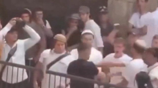 Mescid-i Aksa'ya baskın düzenleyen Siyonist grup, Peygamber Efendimize küfür etmeye başlayınca o bölgede bulunan bir Filistinli genç, alçakça davranışa kayıtsız kalmayarak Siyonist gruba karşı tek başına karşı koydu. O anları cep telefonu kamerası saniye saniye kaydetti.