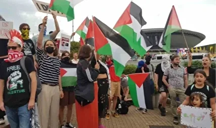 Protestocular, "Gerçek terörist İsrail devletidir" ve "Filistin'e özgürlük" gibi sloganlar attı. Gösterilerde taşınan dövizlerde, İsrail'in Gazze'deki "soykırımına son vermesi" ve uluslararası toplumun İsrail'i izole etmesi yönünde çağrılar yer aldı. Maçın başlamasıyla birlikte taraftarlar, "Zıplamayan İsraillidir!" şeklinde tempo tutarak takımlarına destek verdi.