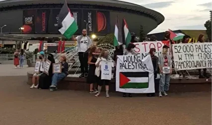 Maçın oynandığı Spodek Spor Salonu'nda bazı taraftarlar Filistin bayrakları açarken, salon dışında da İsrail'in Gazze'deki eylemlerini protesto eden iki farklı gösteri düzenlendi.