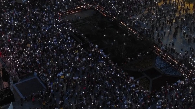 İsrail'in Tel Aviv kentindeki Habima Meydanı’nda toplanan binlerce kişi, Gazze'deki savaşın durdurulması ve esir takası talebiyle hükümetlerine karşı gösteri düzenledi.
