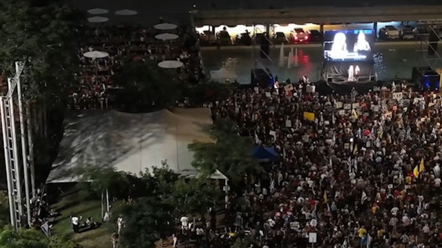 İsrail’in Tel Aviv kentindeki Rabin Meydanı’nda toplanan yüzlerce İsrailli, Gazze’deki savaşın sona erdirilmesi ve Gazze’de tutulan İsraillilerin geri getirilmesi talebiyle protesto düzenledi.