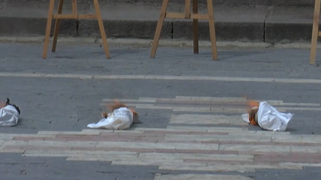 Artvin Çoruh Üniversitesi Görsel İletişim Tasarımı Bölümü Öğretim Üyesi Dr. Kemal Sağlam, Gazze'de yaşananlara dikkat çekmek amacıyla Ulus Zafer Anıtı önünde bir protesto gerçekleştirdi. Sağlam, öğrencilerinin yaptığı çalışmaları sergiledi. Yanmış kefenlere sarılı tahta parçalarını meydana dizen Sağlam, "Odunlar uyanın; Gazze'de bebekler ölüyor, insanlık ölüyor" diyerek slogan attı.