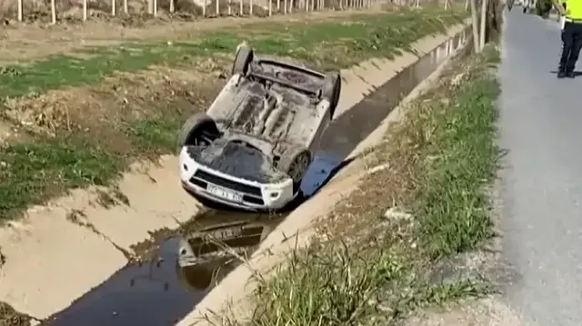 Aydın'ın Efeler ilçesinde sürücüsünün direksiyon hakimiyetini kaybettiği otomobil kanala uçup ters dönerken, sürücü ve eşi arabadan burunları bile kanamadan çıktı.