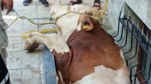 İstanbul Bahçelievler'de, kurban pazarından satın alınan boğa, bir binanın bahçesine bağlandı. Kesim için bağı çözülen boğa kaçmaya çalışırken binanın bodrum katındaki dairenin pencere boşluğuna düştü. Boğayı bulunduğu yerden çıkaramayan sahipleri durumu itfaiye ve belediye ekiplerine haber verdi. İhbar üzerine olay yerine gelen ekipler, iş makinesine bağladıkları boğayı bulunduğu yerden kurtardı. Çevredekiler kurtarma operasyonunu cep telefonu kamerasıyla kaydetti.