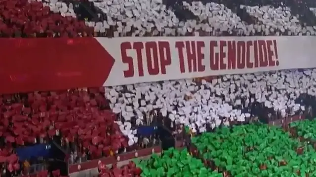 UEFA Şampiyonlar Ligi grup aşamasının üçüncü haftasında Galatasaray ile Bodo/Glimt arasında Ali Sami Yen Spor Kompleksi RAMS Park'ta oynanan maçta Galatasaraylı taraftarlar, Filistin bayrağıyla koreografi yaparak, "Soykırımı durdurun" pankartı açtı.