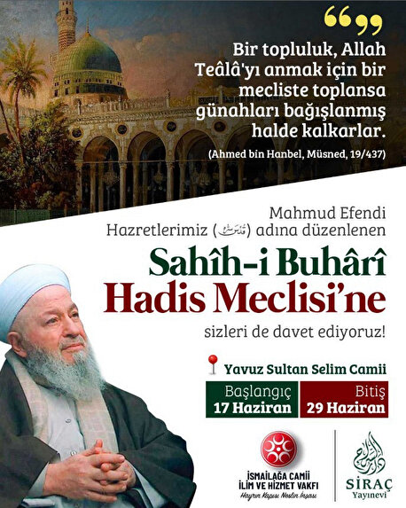 İsmailağa Camii İlim ve Hizmet Vakfı, asırlık ilim geleneğini yeniden canlandırarak Buhari Hadis Meclisini başlatıyor. 17 Haziran – 29 Haziran 2025 tarihleri arasında İstanbul’daki Yavuz Sultan Selim Camii'nde gerçekleştirilecek programa dünyanın dört bir yanından gelecek olan seçkin hadis âlimlerinin iştirakiyle Sahîh-i Buhârî okutulacak. Programa katılanlara senedli icazet belgesi verilecek.
